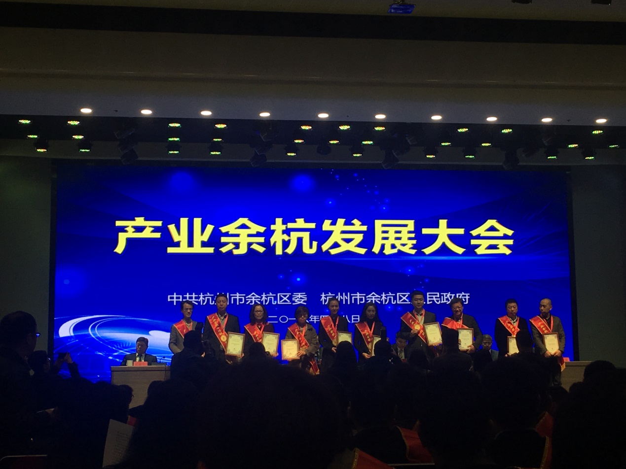 本次大會的主題是“產(chǎn)業(yè)為主,優(yōu)勢再造”,會前播放的電視專題片《產(chǎn)業(yè)為王,優(yōu)勢再造》生動的展示了余杭區(qū)企業(yè)欣欣向榮的現(xiàn)狀,同時也基本反映了中國產(chǎn)業(yè)升級轉(zhuǎn)型的概況。會議由區(qū)委副書記、區(qū)長朱華主持,在區(qū)委常委、常務(wù)副區(qū)長祝振偉宣讀表彰決定后,依次頒發(fā)了卓越貢獻企業(yè)、綜合貢獻企業(yè)、十佳信息經(jīng)濟企業(yè)、十佳高新技術(shù)企業(yè)等101項獎項。其中阿里巴巴集團因為其對余杭區(qū)的卓越貢獻而榮獲產(chǎn)業(yè)余杭卓越貢獻企業(yè)獎,同時獲得由長江汽車制造的5輛新能源大巴以及1250克純金打造的金牌;我司獲得產(chǎn)業(yè)余杭十佳高新技術(shù)企業(yè)獎以及400克純金打造的金牌,同時獲得該獎的還有浙江運達風(fēng)電股份有限公司、杭州工業(yè)鍋爐有限公司等;老板集團、諾貝爾集團、西奧電梯、貝達藥業(yè)、南方泵業(yè)等20家公司獲產(chǎn)業(yè)余杭綜合貢獻企業(yè)二十強。