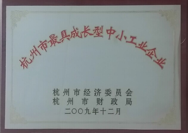 2009年杭州市最具成長型中小工業(yè)企業(yè)