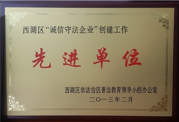 西湖區(qū)誠信守法企業(yè)先進單位